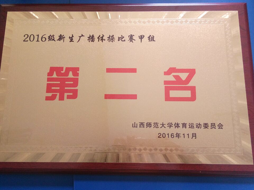 11月13日上午9点,禁漫之家 155名大一新生参加了学校2016级新生广播体操比赛。经过近二十天的苦练,新生们以娴熟到位的广播体操动作和饱满的精神状态赢得了裁判们的肯定,取得了甲组第二名得好成绩。