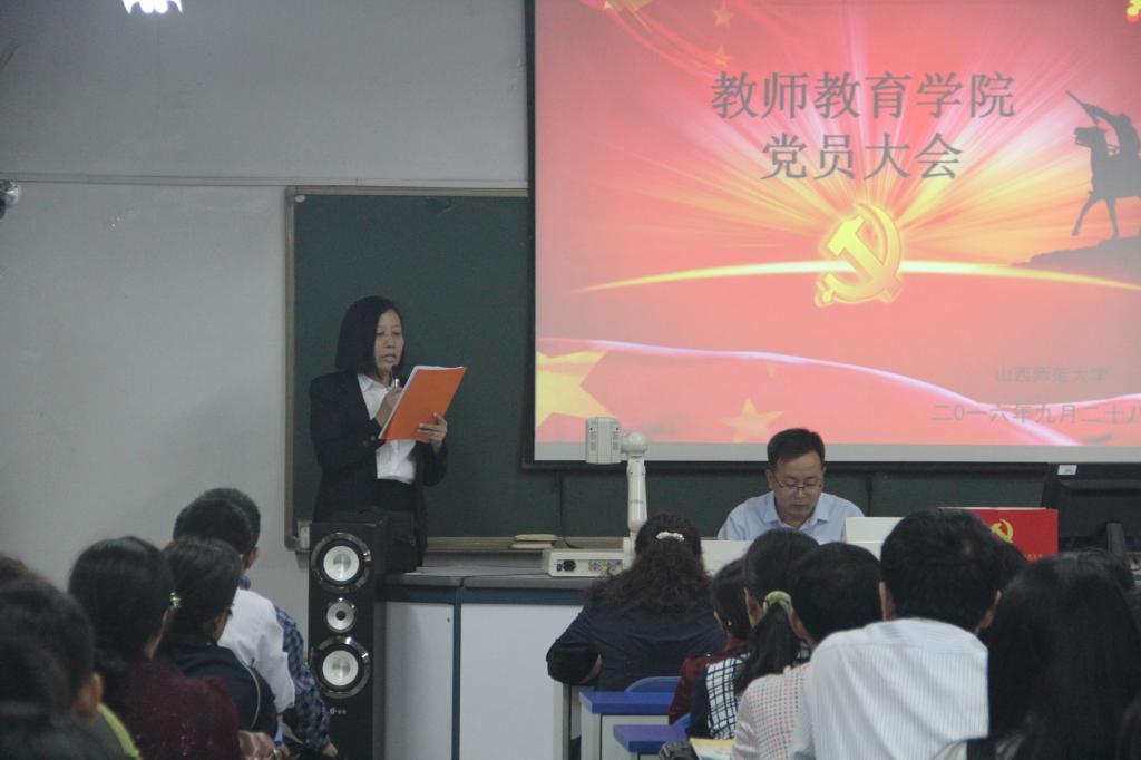 9月28日晚7:00,按照校党委关于做好我校第五次党代表大会代表选举工作的总体部署,经校党委批准,教师教育学院在07408教室召开全体党员大会,选举产生出席我校第五次党代表大会代表。大会由学院党委副书记王银同志主持。