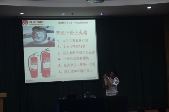 胥江教官通过对大量案例的分析向同学们图文并茂的介绍了生活中火灾发生的原因及存在的消防隐患,警示大家一定要提高消防安全意识。与此同时,胥江教官还系统地介绍了目前我国所使用的消防工具,详细讲解了它们的操作步骤和使用时需要注意的细节,以及发生火灾时如何逃生的一些方法。讲座最后,他向大家强调消防安全无小事,希望大家能从工作和生活中的点滴做起,一定要做好预防,居安思危。