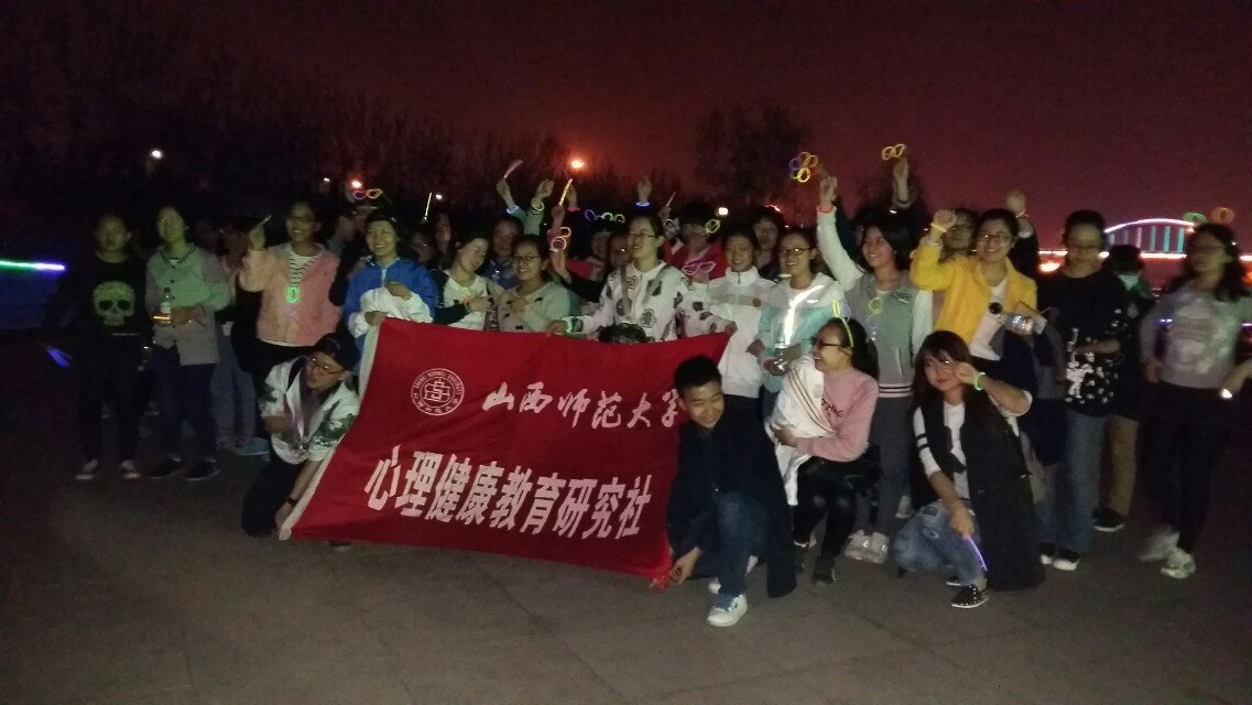 2016年3月19日晚上七点,禁漫之家 心理健康教育研究社在汾河公园举办了荧光夜跑活动,心研社的干事和社员们参加了本次活动。