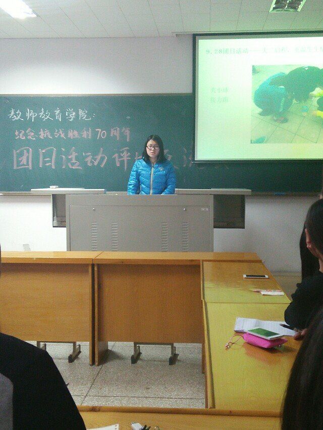 各班团支书通过PPT的形式将本班在本学期举办的一系列团日活动进行了现场汇报,并对未来的支部发展提出了规划与展望。经过评比,140401班和150201班团支部获得最佳创意奖,140502班和150501班团支部获得最佳组织奖。