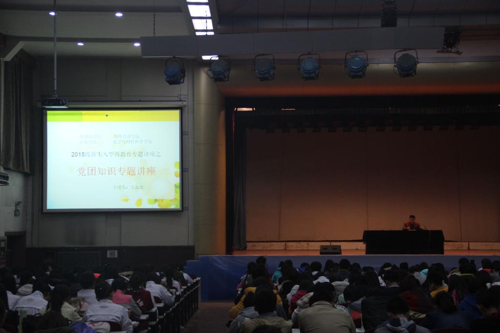 11月5日、6日晚7点,教师教育学院、外国语学院、音乐学院和化学与材料科学学院在学生文化艺术活动中心联合举办了2015级新生入学教育第二次专题讲座。本次讲座共分为两个专题,分别从党团知识、安全知识两方面指导新生尽快地适应大学的学习与生活。