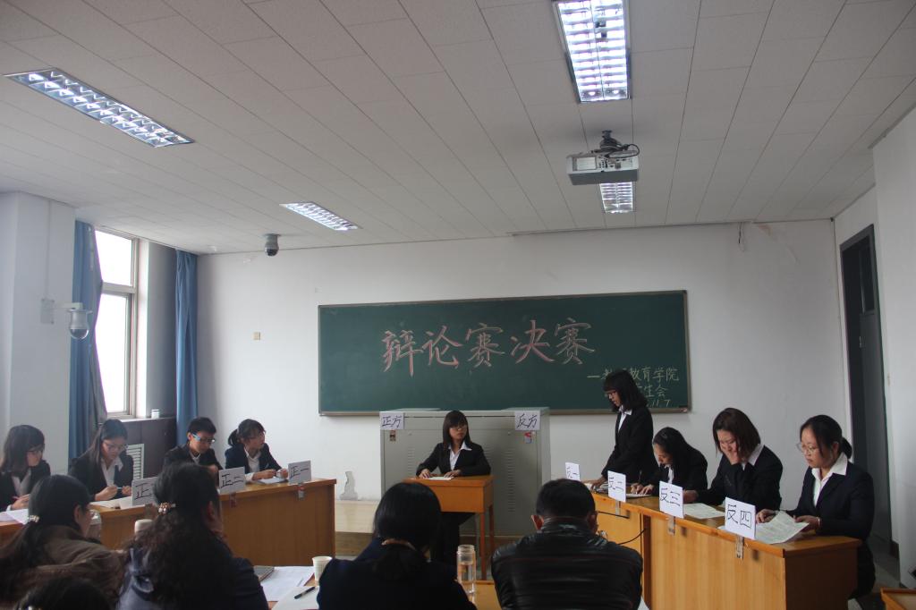 团委学生会举办的学生辩论赛决赛在7号楼五层观摩室如期进行。副院长张潮老师、教育管理系系主任肖军虎老师、课程与教学系系主任杨红萍老师、教育管理系张迎春老师和学前教育系席小莉老师担任了本次决赛的评委。