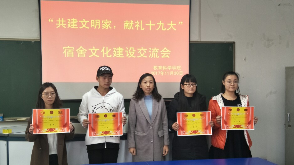 活动从宿舍卫生、装饰设计、特色创意和党团氛围等四方面进行交流,同学们通过PPT展示和小视频等形式向大家讲解各宿舍的成果。最后,主持人宣布获奖宿舍名单,由任书记、宁老师为获奖宿舍依次颁奖,本次活动在热烈的掌声中圆满结束。