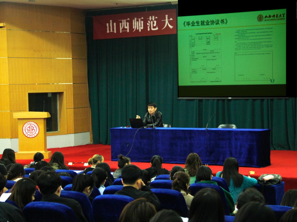 张大伟老师以“做好国家就业政策宣传,促进高校毕业生就业”为主题,就毕业生就业的类型、就业派遣工作的程序及相关政策、户口迁移和档案的转递、人事代理的相关规定、求职时的注意事项、应该关注的政策等六个方面为同学们进行了详细的讲解,并与毕业生们进行了交流互动,对同学们关于就业问题的诸多疑惑进行了耐心解答。张老师风趣幽默的语言不时引起在座同学的阵阵笑声,现场气氛十分活跃;而深入浅出的讲解又让同学们在欢乐之余高效地学到了生活和成功就业的宝贵经验。最后,本次讲座在同学们的热烈掌声中宣告结束。