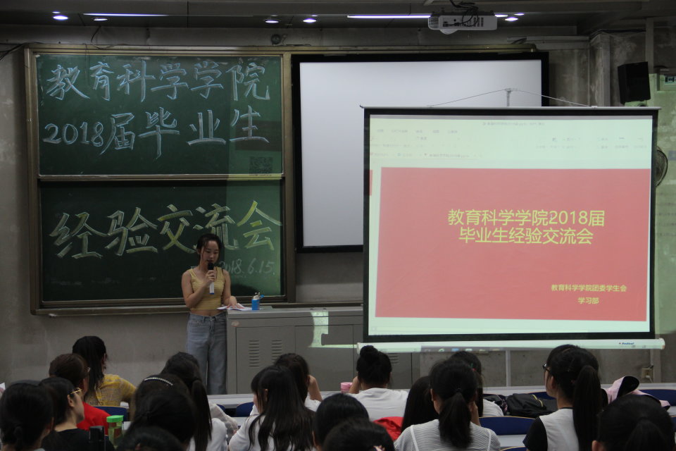 本次活动分两个环节进行,第一环节由教育技术专业的窦潇同学和学前教育专业的周国蓉同学与大家分享了她们的公考之路,跟大家交流经验,为大家展现了选调生不一般的风貌。第二环节由分别来自教育技术专业的李云同学、小学教育专业的赵云娜同学、学前专业的薛二焕同学、心理学专业的杨婷同学、学前教育专业的连心睿同学为我们讲述她们的考研保研之路,为大家介绍了许多学习的经验和方法,鼓励同学们要积极筹备,坚持努力,不忘初心。