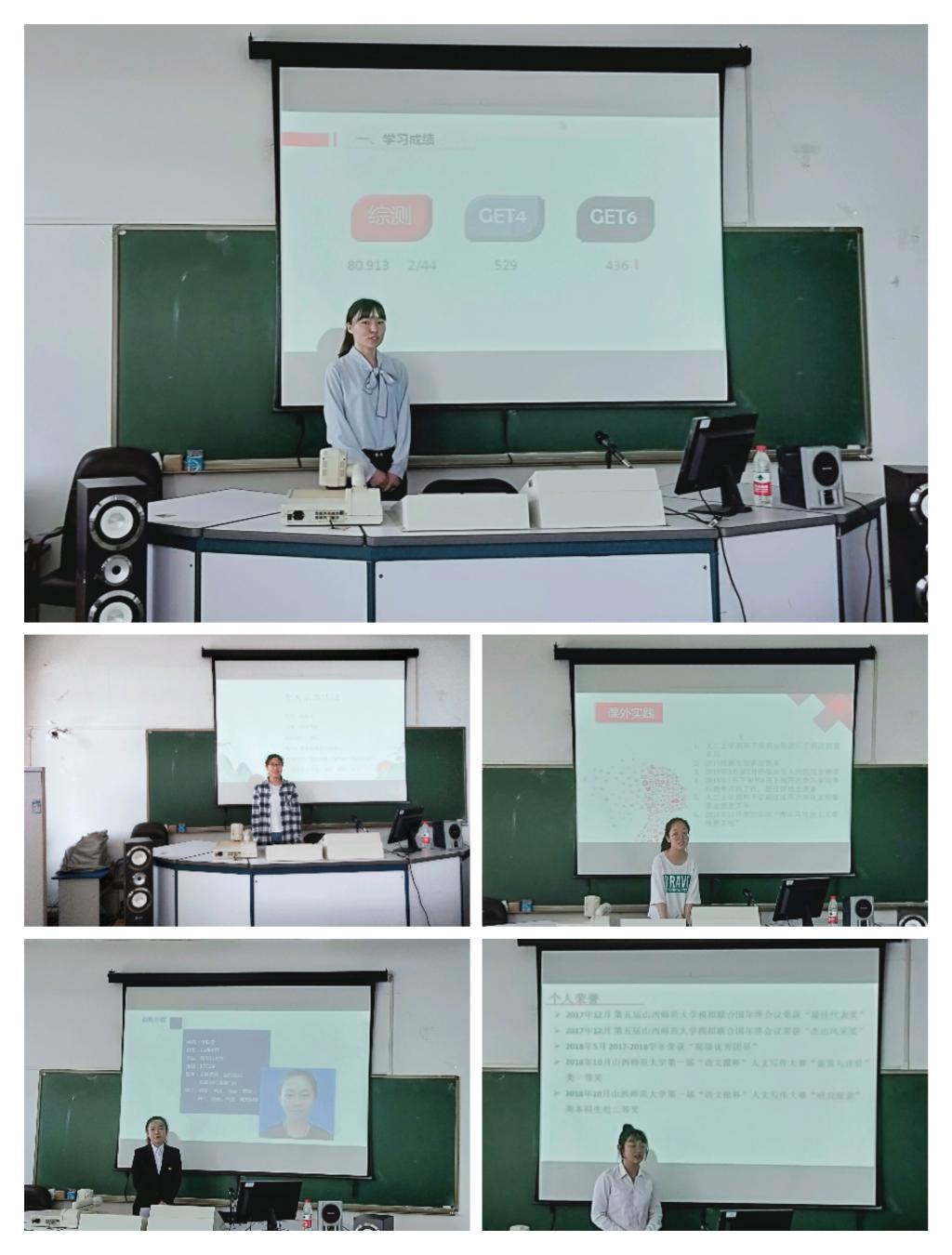 五名优秀学生参与面试,院党委副书记任小玲主持评选。