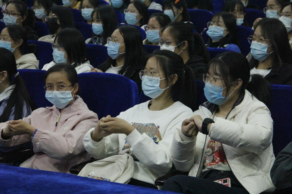 讲座中,王瑞顼首先从当前疫情防控形势出发,向新生介绍了传染病类型、传播途径、呼吸道传染病、艾滋病和预防措施等方面的内容。在介绍预防措施时,王瑞顼亲身示范口罩正确佩戴方法和正确洗手方法,并邀请学生上台互动,现场氛围热烈。