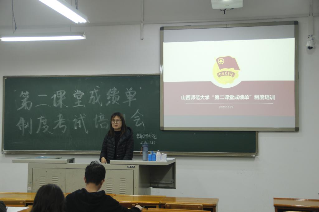 此次培训会第一个环节是考核。考试涉及到学分类别、学分认定条件、到梦空间系统的功能和操作等内容。考试过程中,同学们全神贯注,认真答题。考试结束后,宣传部工作人员郝宾艳对试卷进行讲解。随后,高敏君介绍了“第二课堂成绩单”制度的概念、内容和意义,并围绕思想成长、社会实践、创新创业、劳动服务、文体活动五大板块内容进行了详细讲解,号召同学们夯实基础,积极参加活动,提升自我。