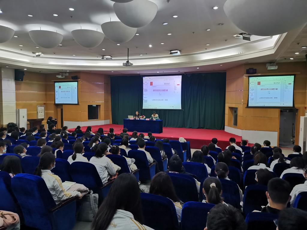 在科学会堂二层报告厅举办第五期“青马工程”专题讲座,马克思主义学院副教授薛秀娟作了题为"感悟马克思主义真理力量"的报告。院学生会工作人员和"青马工程”全体学员参加了本次讲座。讲座由团委老师高敏君主持。