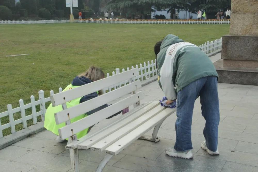 即处寒冷冬日,我亦热情似火。上午八点,青年志愿者们于田家炳教育书院楼前集合。在工作人员的统筹安排下,志愿者们井然有序地展开志愿服务。志愿服务地点遍布校园,巨人广场、文化艺术活动中心、网球场、科学会堂等处都可以看到志愿者的身影。清扫落叶、擦长椅、摆放自行车,志愿服务项目丰富多彩。活动最后,全体志愿者合影留念。