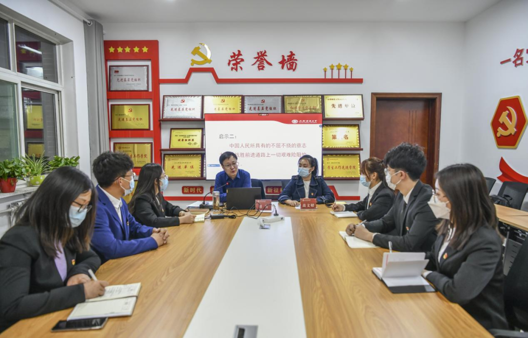4月27日,学院在8号楼201会议室以线上线下相结合的形式举办了第九期“三信教育”大讲坛,院党委书记赵英作了题为“让伟大抗疫精神融入青年血脉”的专题讲座。“心研社”党支部200余名党员和积极分子聆听了讲座,讲座由专职组织员高文婧主持。