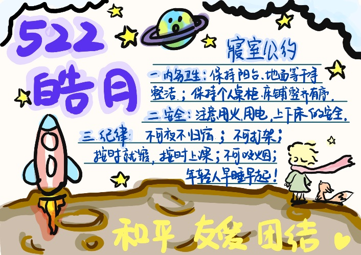本次活动共有两种参与形式。形式一为制作寝室专属logo,参加的同学需根据寝室特点,设计出符合寝室独特文化的logo。形式二为设计寝室公约海报。参加的同学可以根据寝室公约设计出彰显寝室精神的公约海报。本次活动同学们用丰富的想象力展现了各寝室的独特文化,提交作品内容丰富、形式多样,精彩纷呈。
