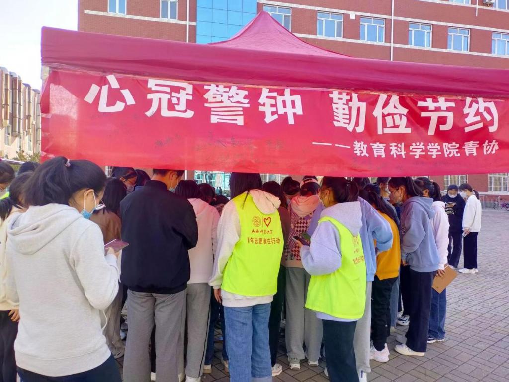 青年志愿者协会于10月31日至11月2日在南校区六号楼前举行了“心冠警钟,勤俭节约”活动。我校学生积极参加。