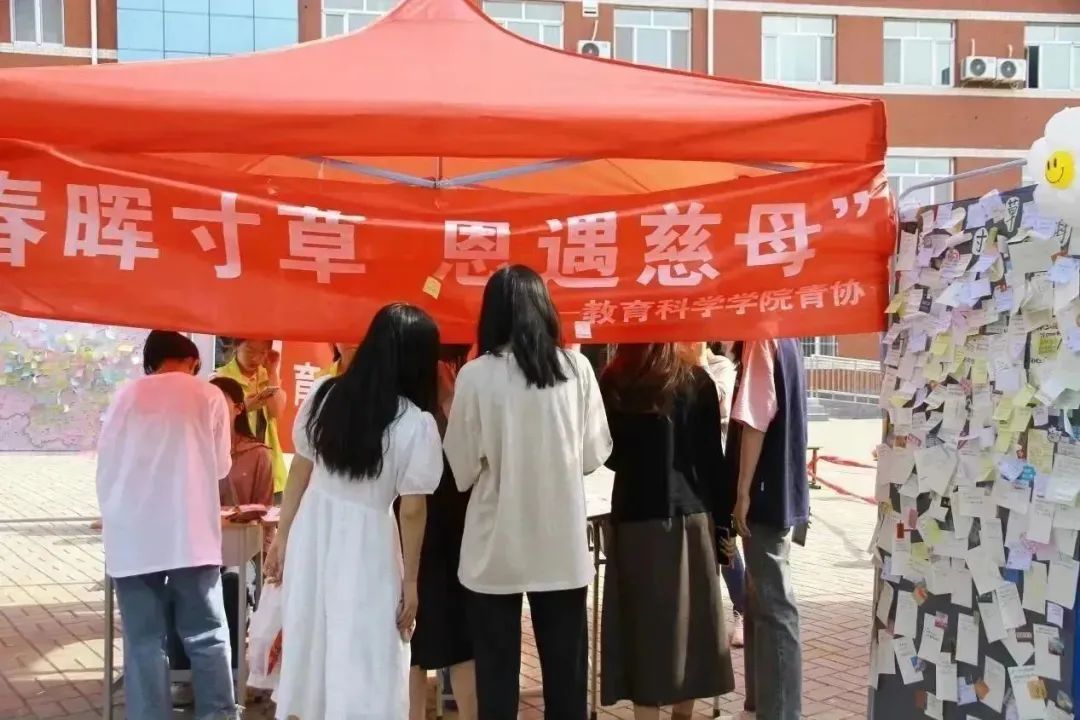 青年志愿者协会联合心理健康研究社在六号教学楼前开展“春晖寸草,恩遇慈母”活动,我校学生积极参与。