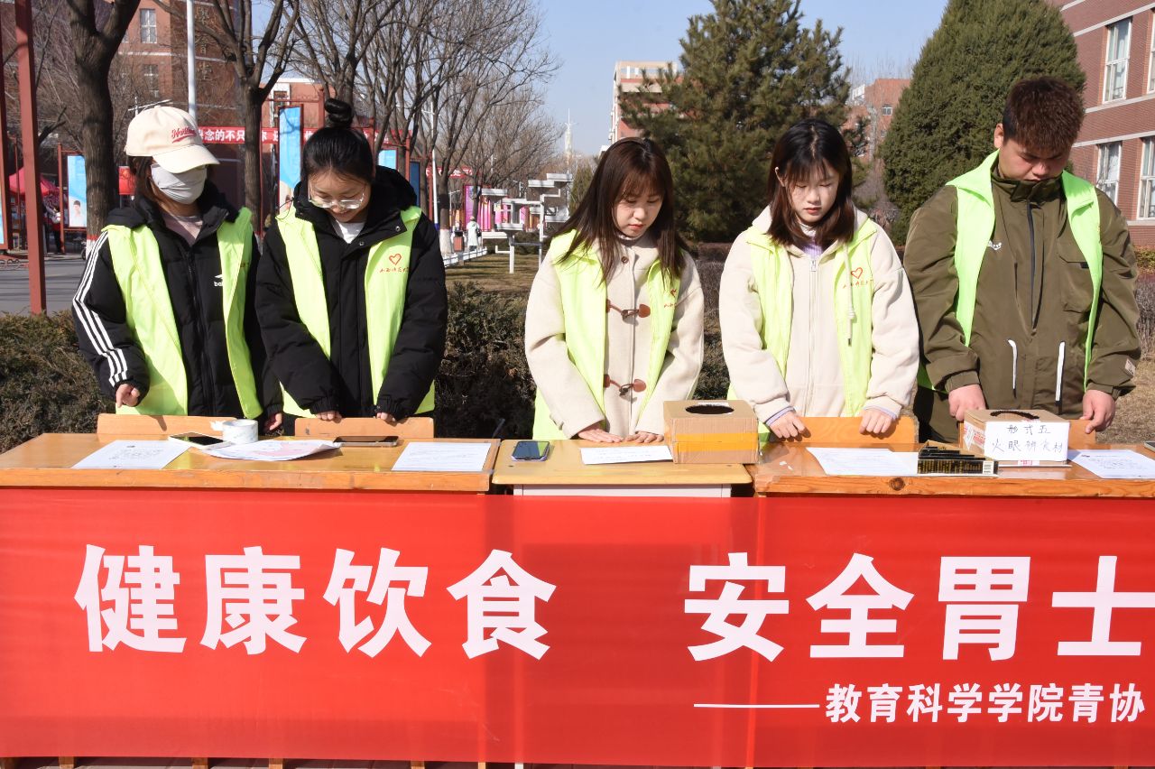 青年志愿者协会在南区6号教学楼前开展“健康饮食,安全胃士”主题活动。