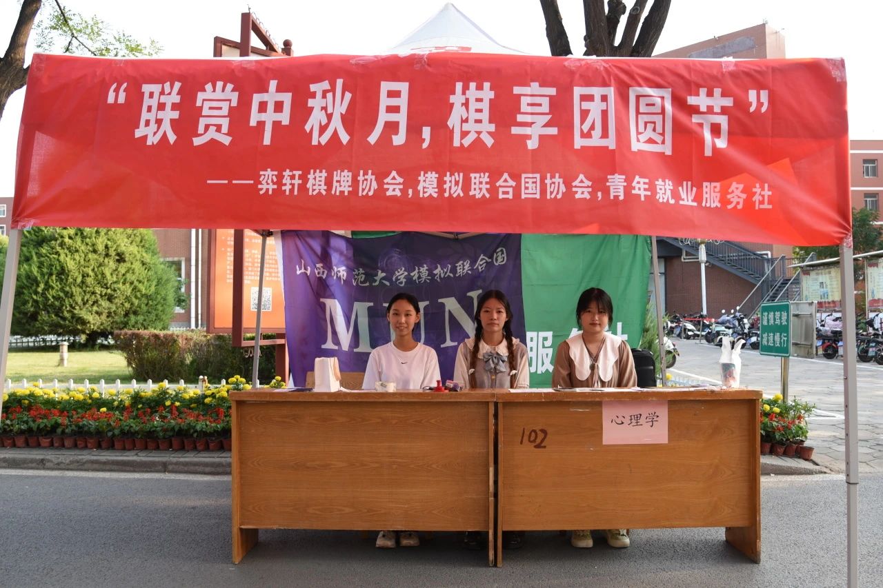 弈轩棋牌协会、模拟联合国协会、青年就业服务社于六号楼前举办“联赏中秋月,棋享团圆节”活动。