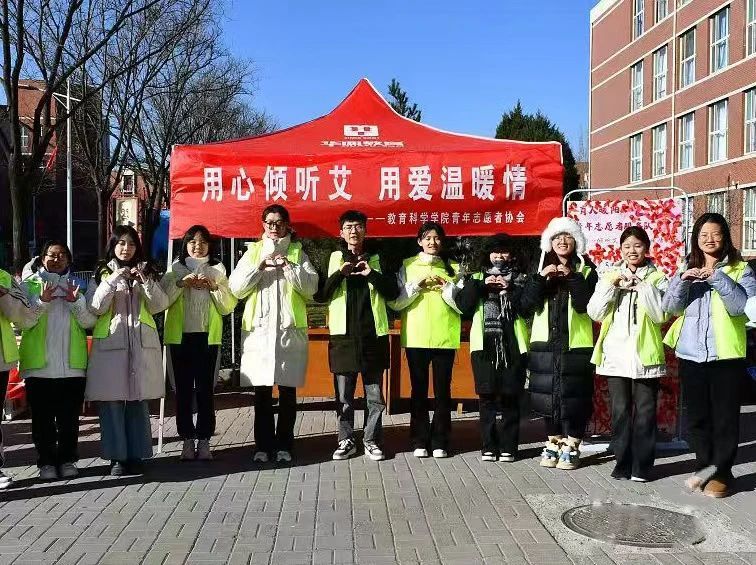 青年志愿者协会在南区4号楼和5号楼间举办了“用心倾听艾,用爱温暖情”主题活动,吸引了众多学生的积极参与。