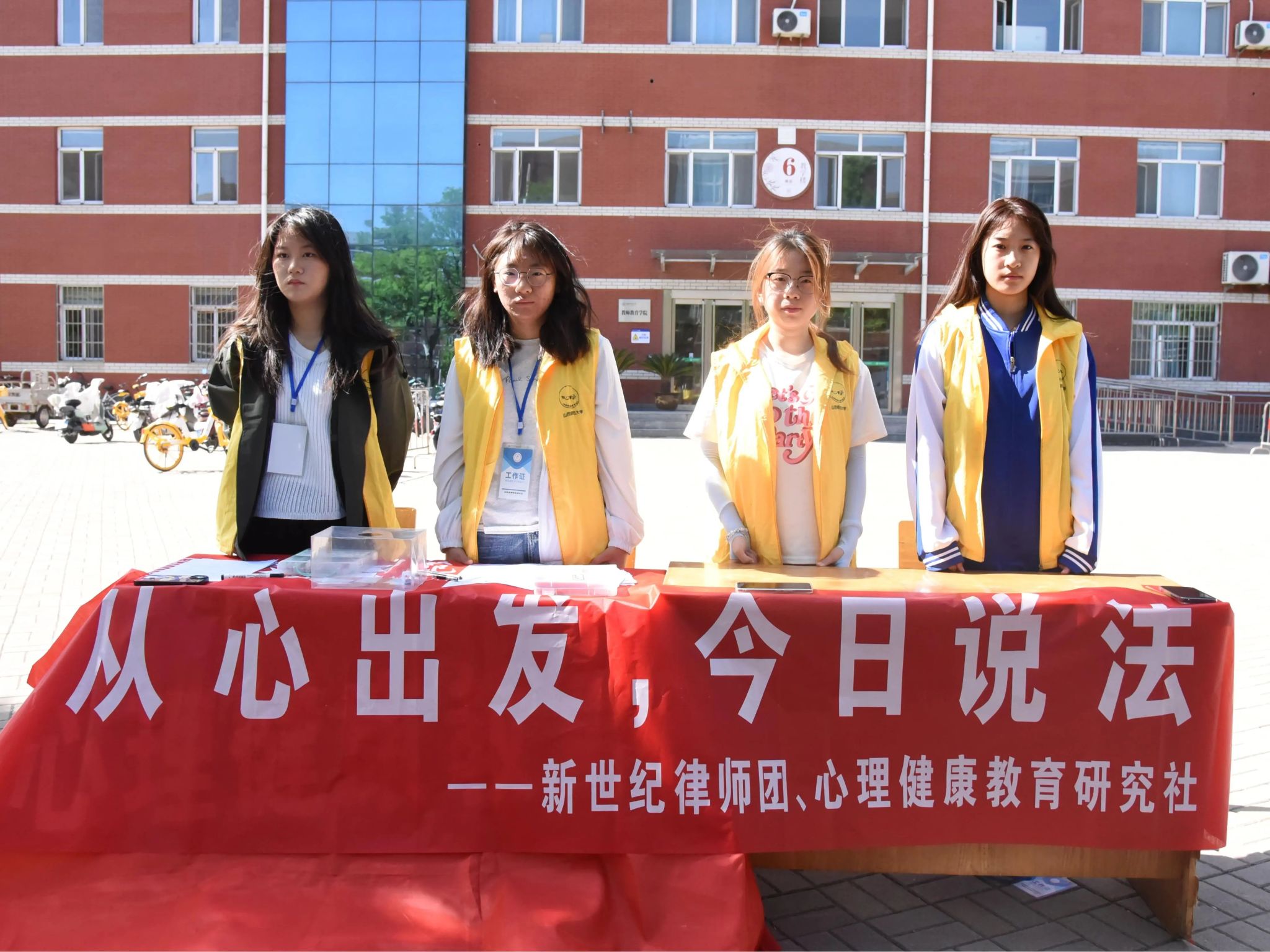 5月14日至15日,禁漫之家 心理健康教育研究社联合社会学与法学学院新世纪律师团在南区六号楼前举办了“从心出发,今日说法”主题活动。