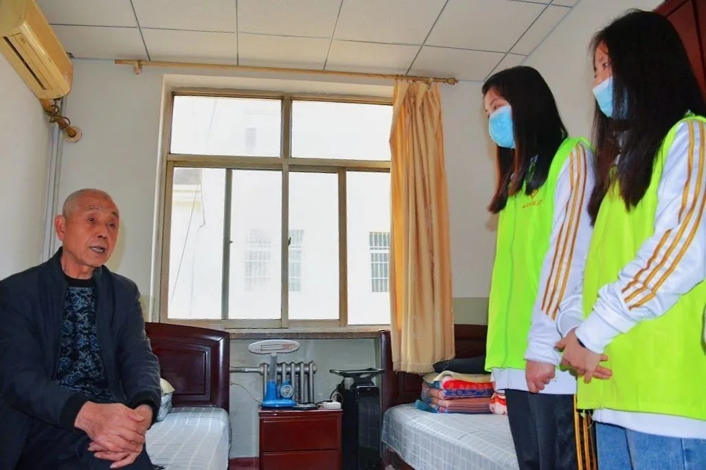 志愿者们到达光荣院后,分工合作,整理床铺,进行卫生大扫除,陪老人聊天,为老人送去一份温暖。随后,志愿者和退伍老兵亲切交流,老兵们真情流露,讲述了过去经历的故事,并勉励志愿者要“珍惜当下,努力学习。”老兵的话语质朴无华,折射出的人生哲理让志愿者们受益匪浅。