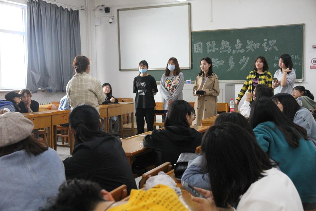 活动以“你来比划我来猜”的游戏形式进行,每组三名同学,在两分钟内根据队友肢体动作提示进行国际热词竞猜,猜对则积分。同学们绞尽脑汁,不甘示弱,整个活动过程精彩纷呈。最后,工作人员公布各组得分,并合影留念。