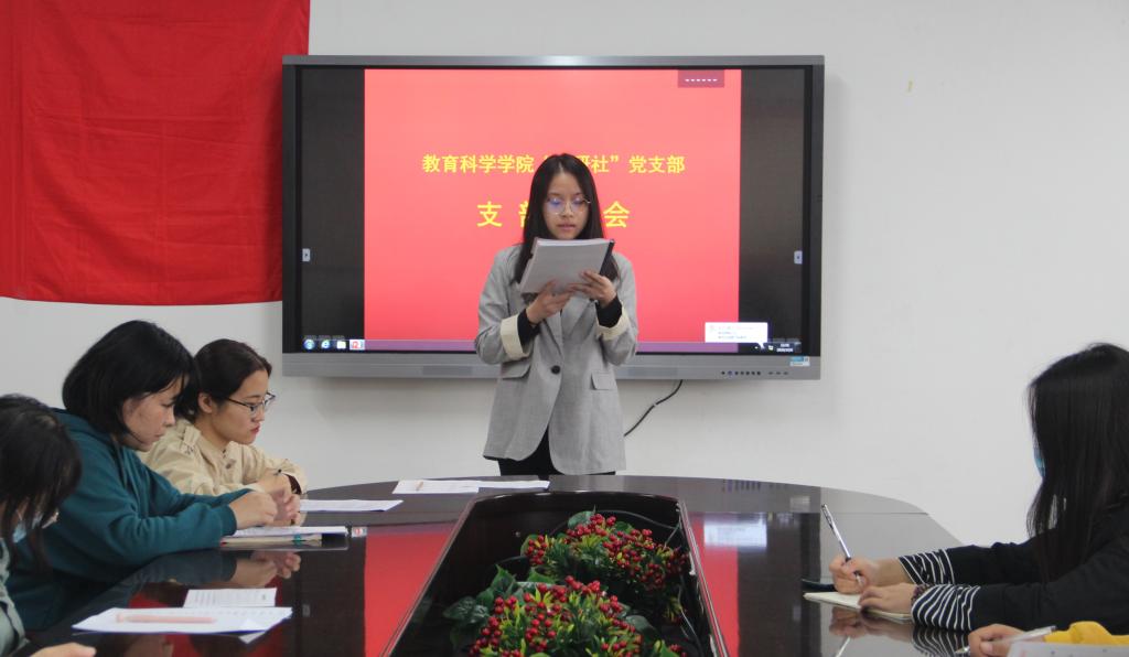 “心研社”党支部在田家炳书院07509会议室召开预备党员接收大会,会议由支部书记高敏君主持。