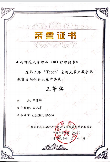 2019年第三届“iteach”全国大学生数字化教育应用创新大赛三等奖