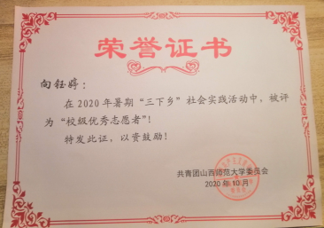 2020年“暑期三下乡”校级优秀志愿者