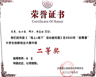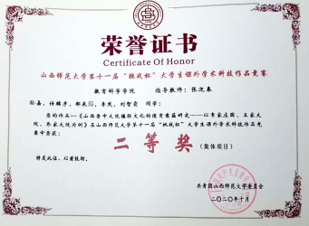 2020年第十一届“挑战杯”大学生课外学术科技作品竞赛二等奖