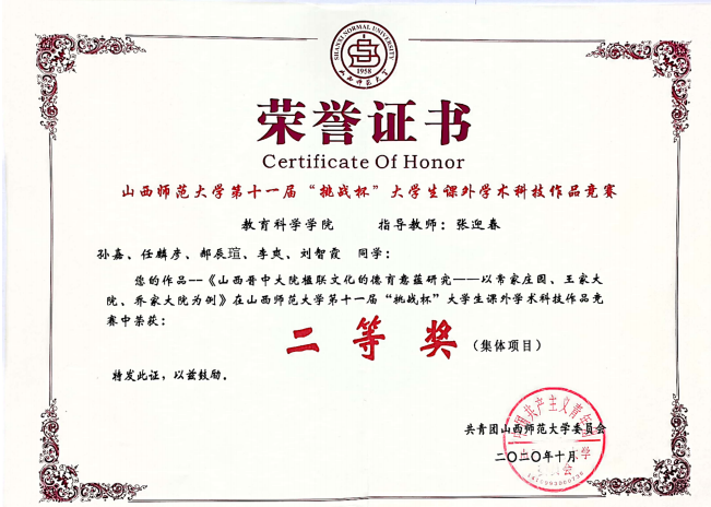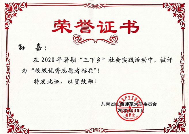 2020年“暑期三下乡”校级优秀志愿者标兵