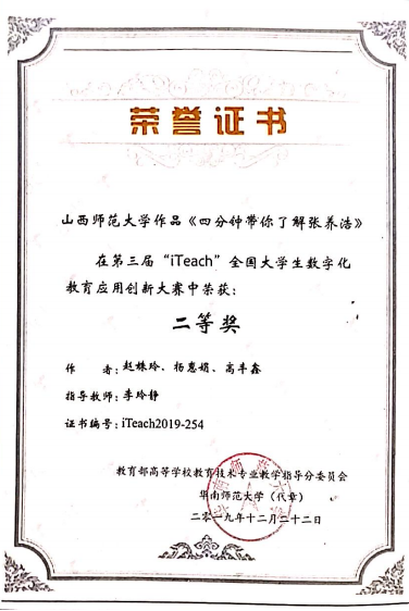 2019年“iteach”全国大学生创新大赛二等奖
