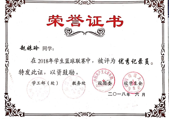 2019年学生篮球联赛优秀记录员