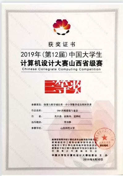 2019年中国大学计算机设计大赛山西省三等奖