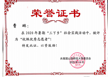 2020年暑期三下乡校级优秀志愿者