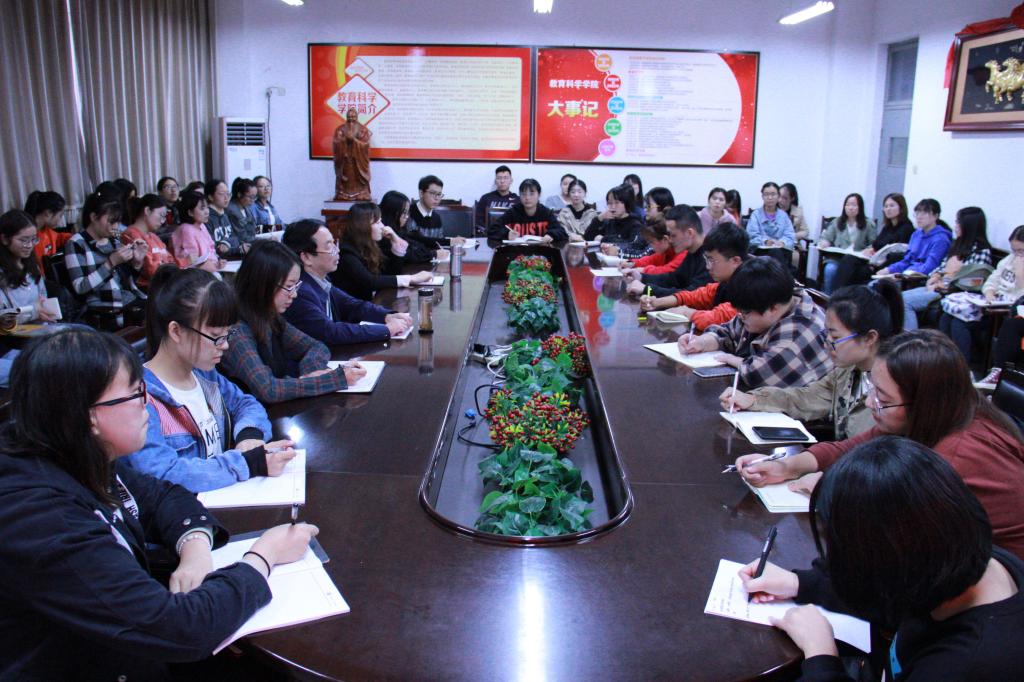 吴文国在讲话中指出,今天的“不忘初心、牢记使命”专题调研,就是要进一步广泛征求意见,认真思考提炼,集中力量提升学院学生党建和思政工作的水平,落实高校“立德树人”的根本任务。他指出,大家发言很积极,而且也提出了很多有建设性的建议。针对大学生思想政治教育,他指出,一要做强做大“三信教育”大讲坛,在强化理想信念教育上取得新成效。大讲坛采取“主讲+互动”的讲坛形式,广泛开展宣讲教育活动,加强思想舆论引导,坚定同学们对马克思主义的信仰,对中国特色社会主义的信念,对实现中华民族伟大复兴中国梦的信心,努力打造同学们喜闻乐见的思想政治教育平台。二要强力打造“互联网+”教育新模式,在唱响网上主旋律上创造新业绩。打造“三微一网”网络新平台,即微博、微信平台、微信群和学院网,努力实现党建和思想政治教育“五大转变”,引导师生积极参与,在青年学生党团骨干中凝聚一批网络生力军,培育一批网络引导员,共同参与网络育人。逐步构建起课内与课外、校内与校外、立体化、跨时空、零距离的网络思政教育互动空间。三要努力打造“金课”,在实现“课堂思政”的工作目标上做出新贡献。要团结和引领广大教师挖掘专业课中蕴含的德育资源,精准对接学校课堂教学改革项目,打造“思想引领示范课”,把育人元素“润物细无声”地渗透于专业教学的过程中,逐渐实现“课堂思政”的要求,使专业课堂呈现“德育味道”。四要发挥心理学和“心研社”专业优势,在心理健康教育上呈现新气象。