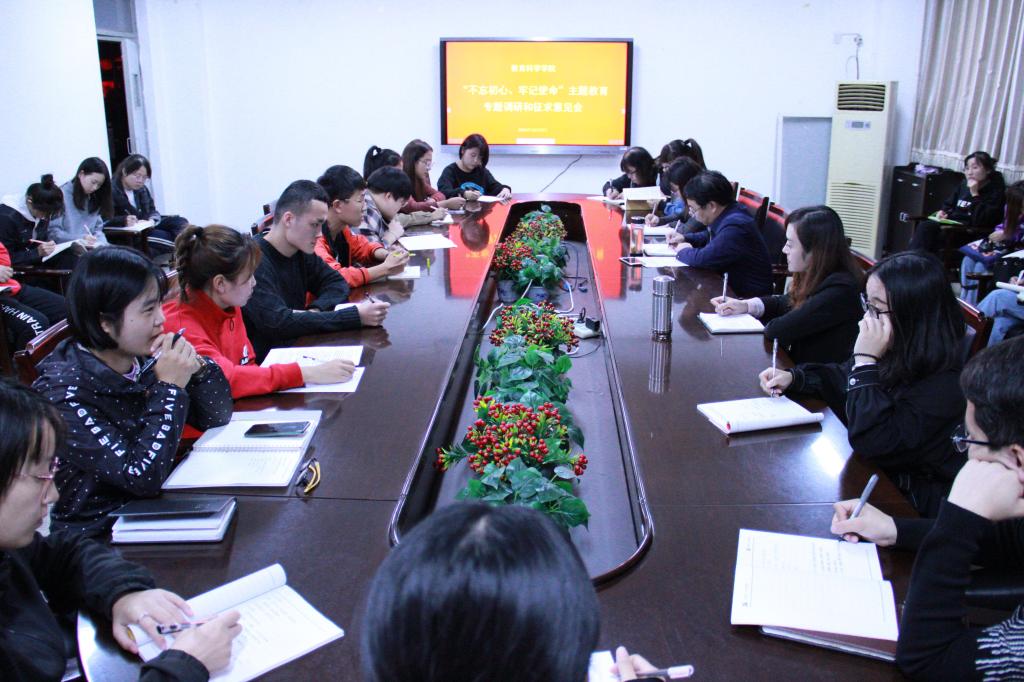 10月9日下午,禁漫之家 召开“不忘初心、牢记使命”主题教育专题调研和征求意见会。院党委书记吴文国、党委副书记高霞,专职辅导员周颖,心研社党支部党员代表、学院八个社团的社长及成员代表、团委学生会的学生干部代表参加了调研。