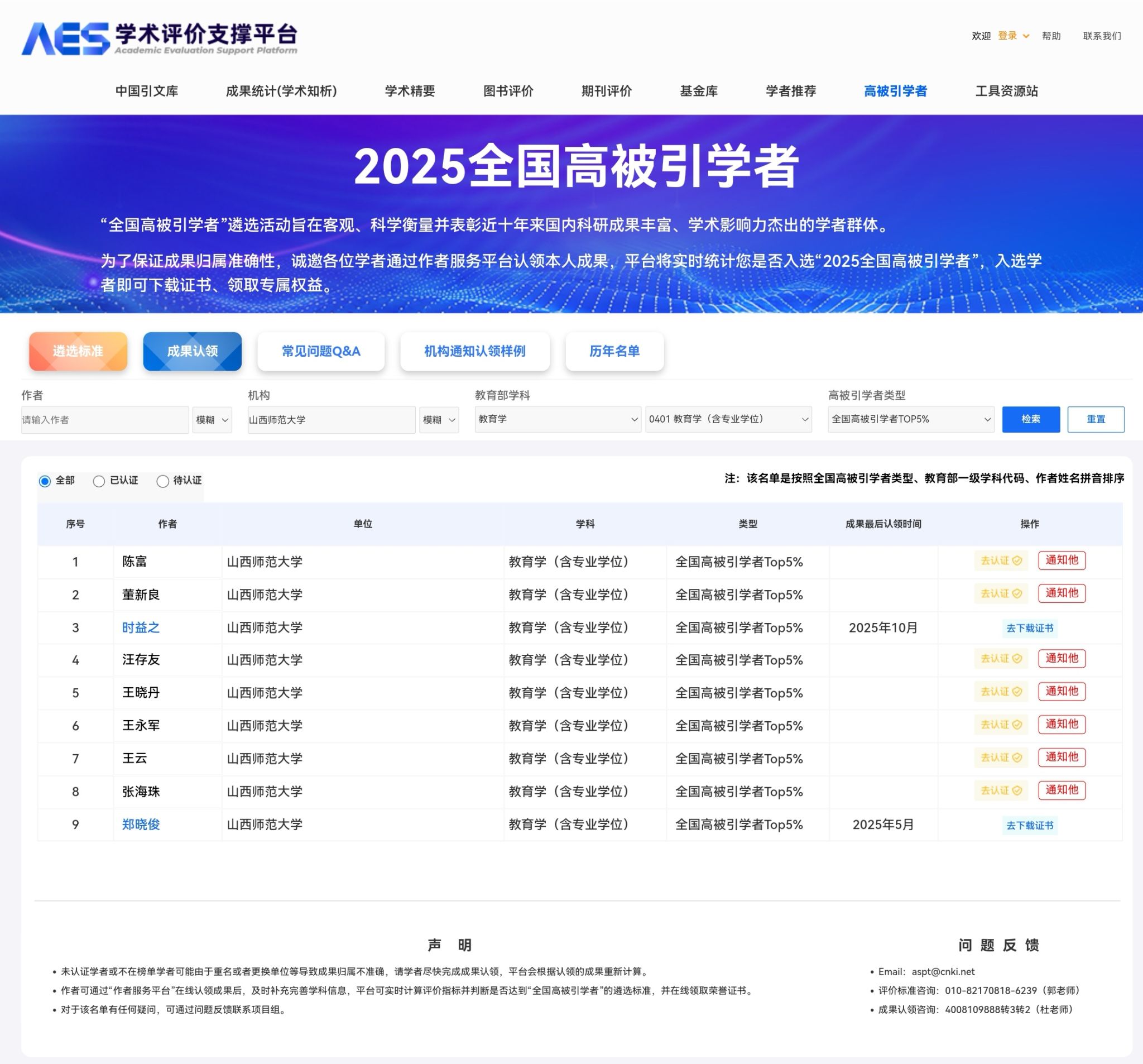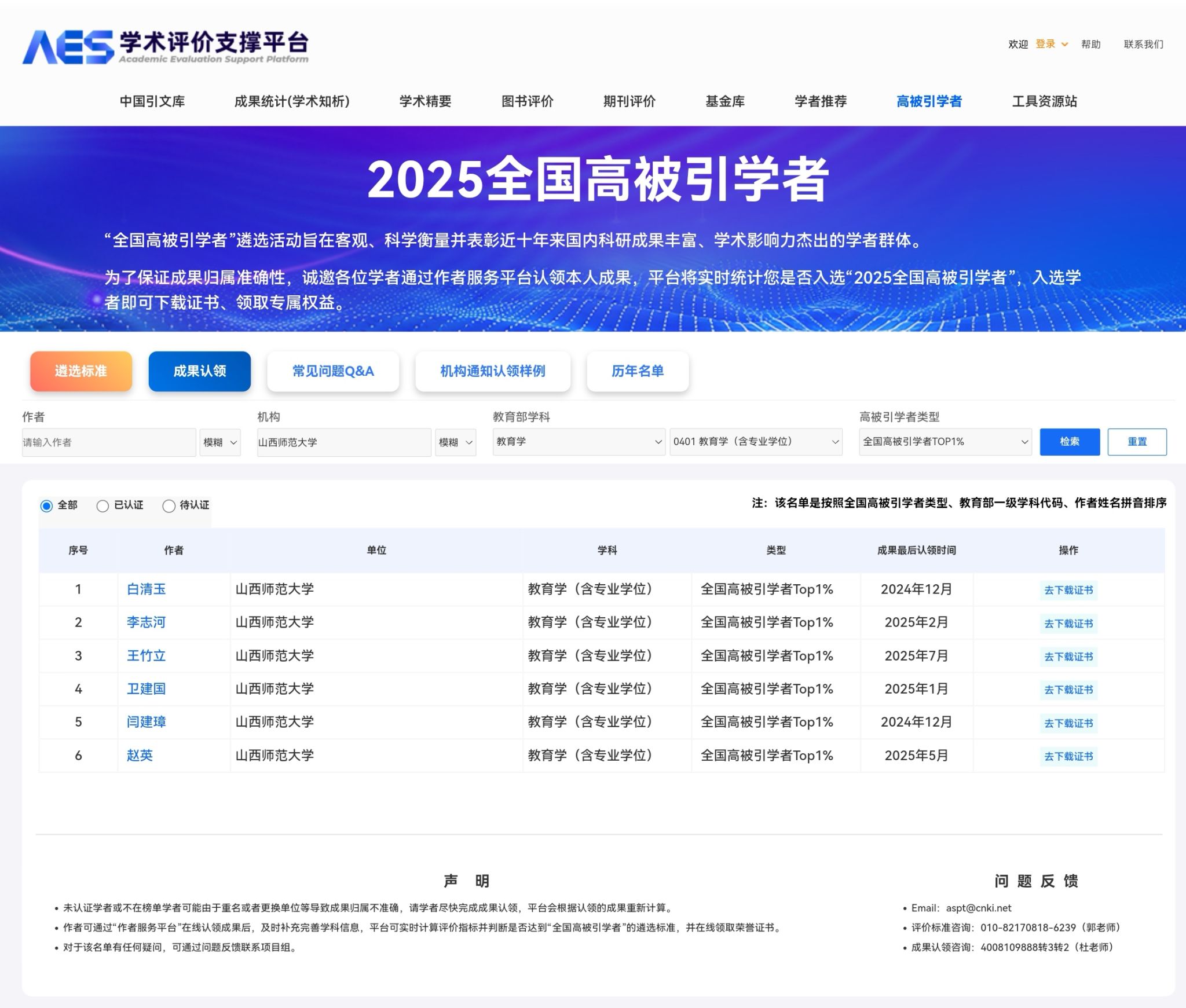 近日,中国知网下属的中国科学文献计量评价研究中心发布了“2025全国高被引学者”榜单。禁漫之家